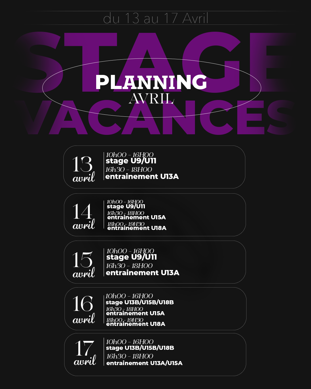 Le club organise un stage, pendant la 2ème semaine des vacances d’avril !